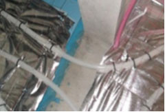 特色工藝有:電源線、銅管從地面處接入,鋪墊橡膠墊膨脹螺絲固定,出回風口保持同一寬度,銅管全部保溫,接口處加強。